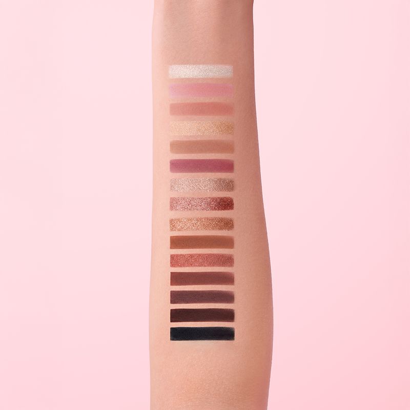 Paleta de 15 tonos neutros en acabados mate, satinado y shimmer. Tonos tierra, beige, bronce y cafés intensos con alta pigmentación y fácil difuminado, ideal para looks diarios o más intensos. Stock limitado.